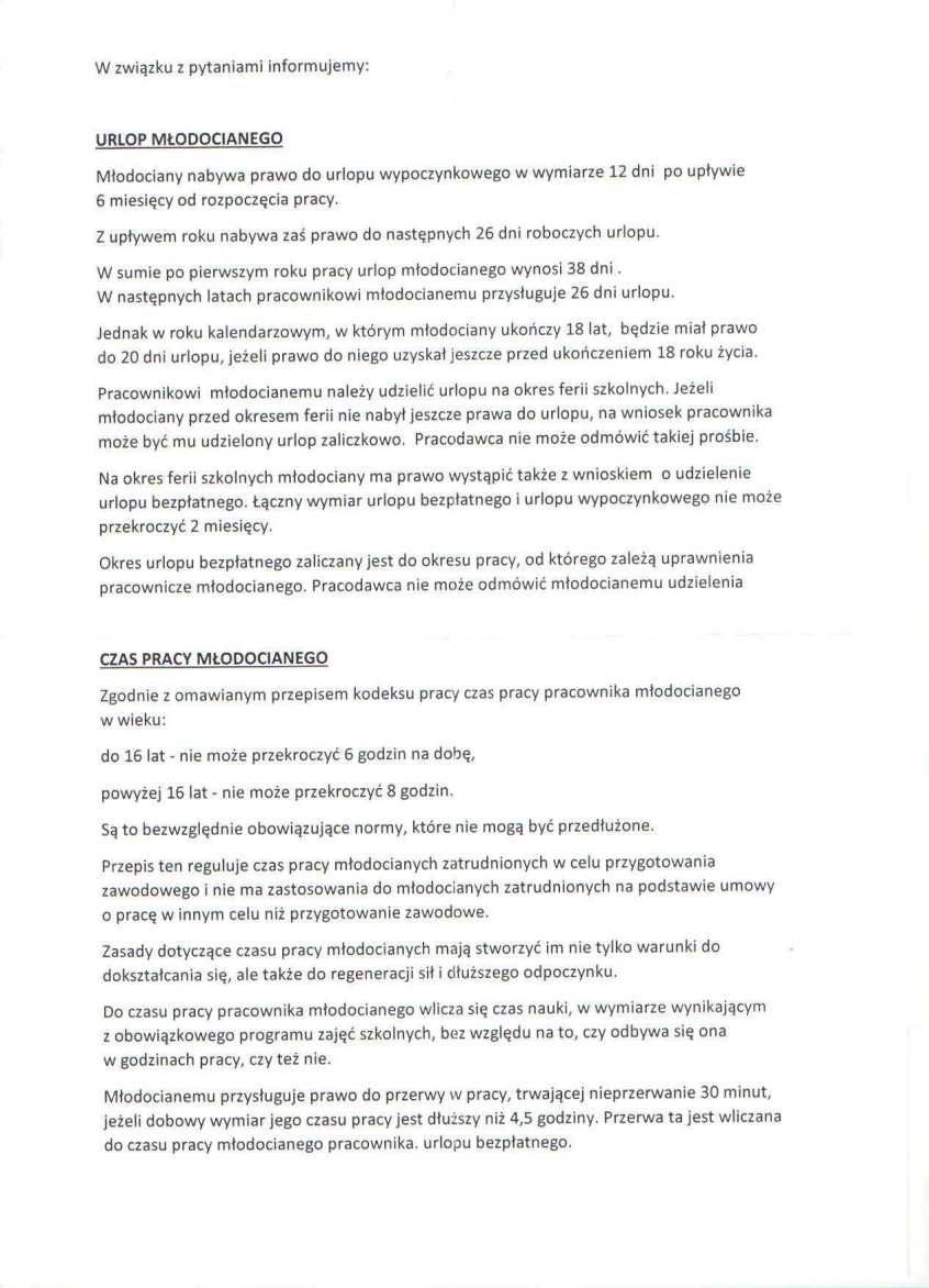 W pierwszej kolejności należy wysłać młodocianego pracownika na badanie Medycyny Pracy celem stwierdzenia zdolności do pracy i wykonywania zawodu.