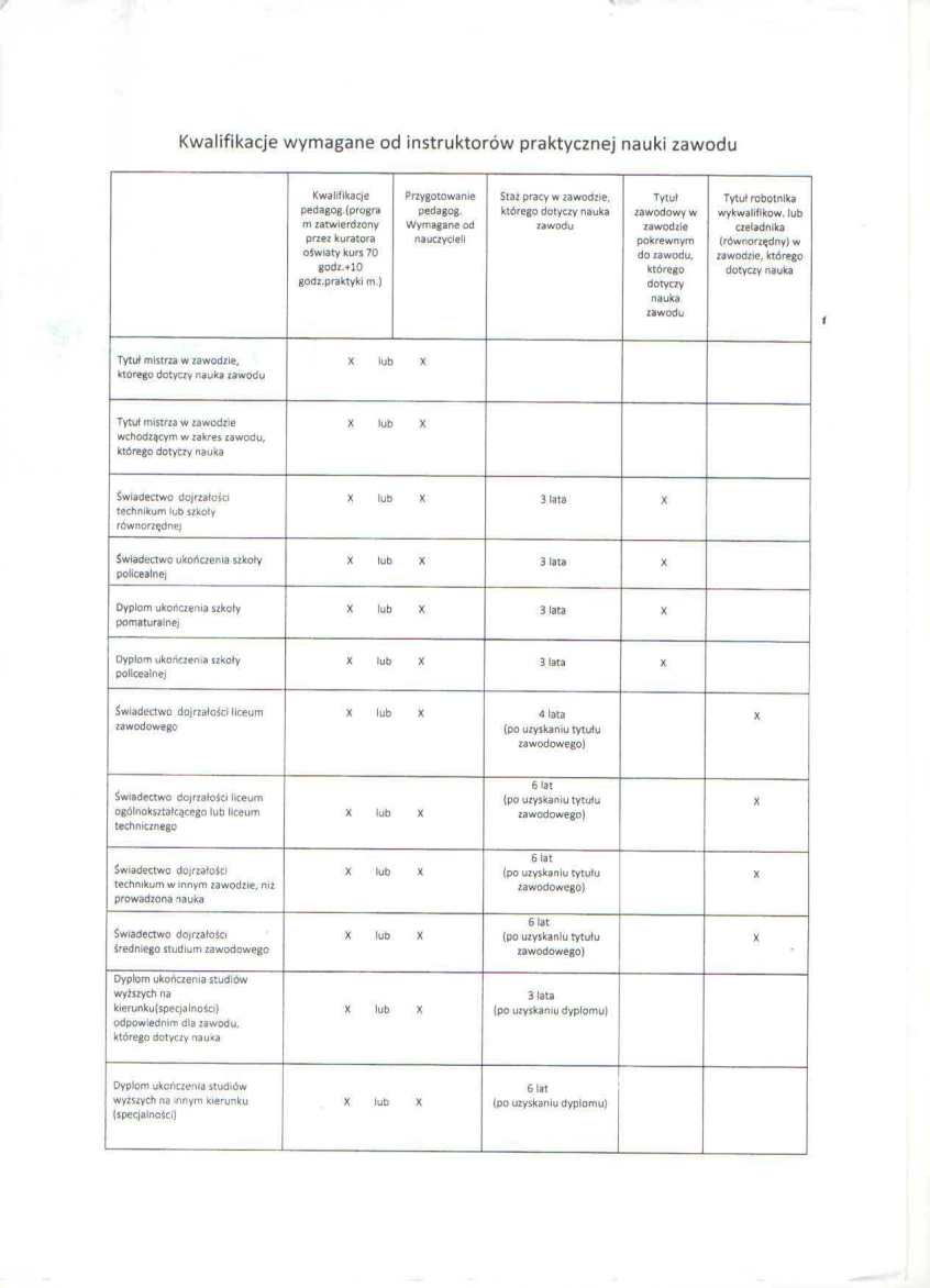 Aby móc szkolić młodocianych pracowników niezbędne są odpowiednie kwalifikacje - kurs pedagogiczny oraz przygotowanie prakyczno-merytoryczne (egzamin mistrzowski, szkoła średnia, wyższa etc.)