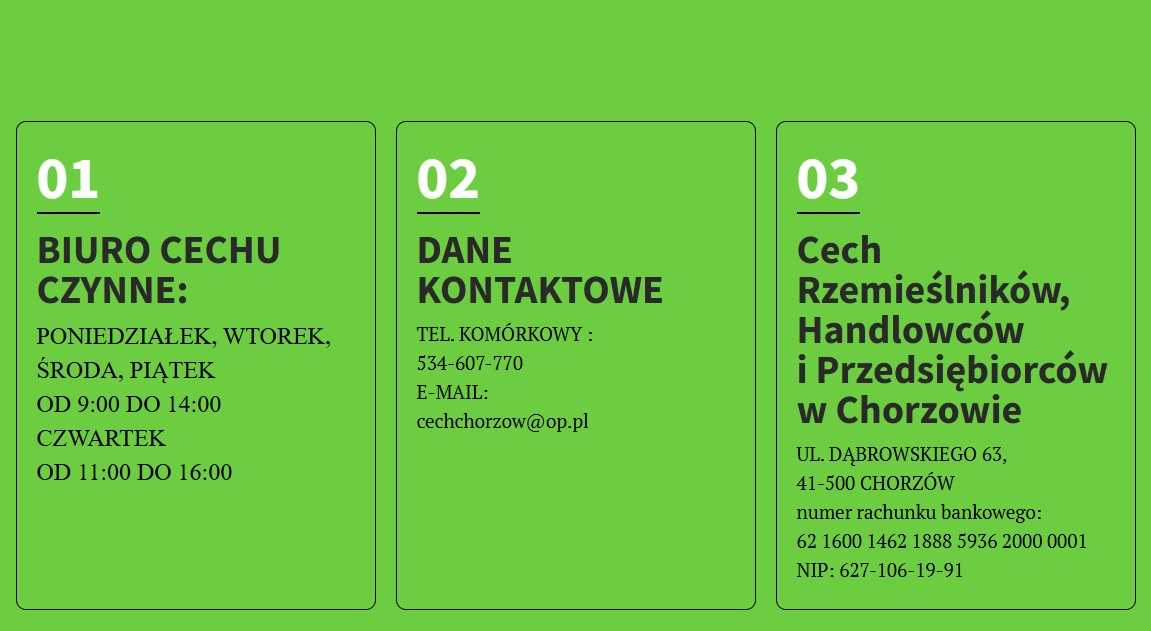Stolarzy, szewców i cholewkarzy, ślusarzy i kowali, rzeźników i wędliniarzy, fryzjerów i perukarzy, piekarzy i cukierników i tym samym rok 1879 uważa się za datęnarodzin obecnego Cechu Rzemieślników, Handlowców i Przedsiębiorców w Chorzowie.